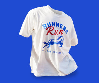 Our Runners Run t-shirt sold out in 1 day this summer so we brought it back from the holidays. Work out in it, hang out in it, wear it to a black tie wedding. What do runners do? Run.