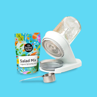 Sprouts are the easiest way to grow the most NUTRIENT DENSE food at home because you don’t need sun and it only takes 3-5 days. It’s insane. You know those tiny $8 packages at the store that go bad in 1 day? Now you can make them at home (your kids can do it). We put them on salads, sandwiches and in our smoothies.